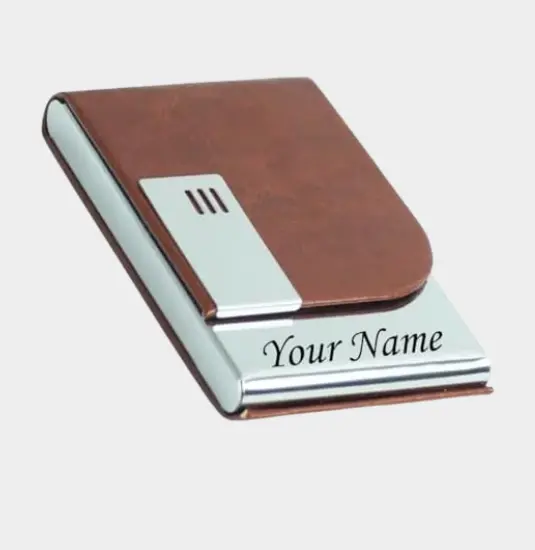 A personalised card holder is a compact accessory designed to store business cards, credit cards, or ID cards while displaying a customized name, logo, or message for personal or corporate use