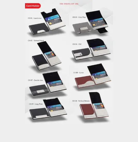 Most cardholders are made from durable materials such as metal, PU leather, stainless steel, or a combination of leather and metal for a premium and long-lasting finish.