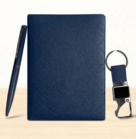 Design: Premium Combo of Diary, Branded Pen & Stylish Keychain in Gift Packaging